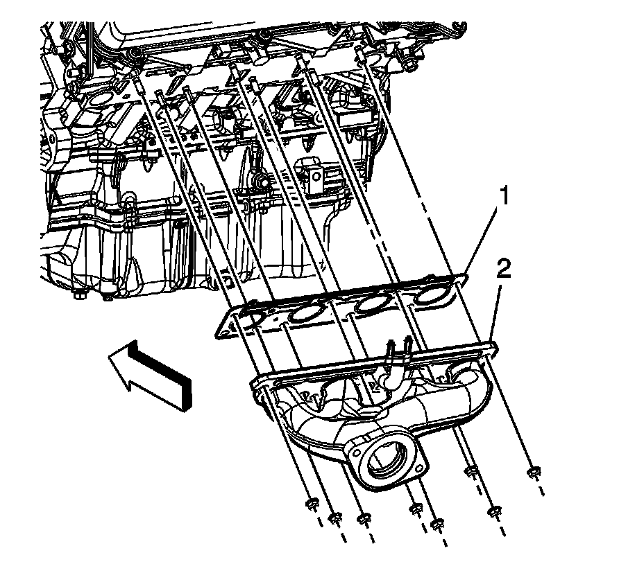 2. Install the exhaust manifold (2).