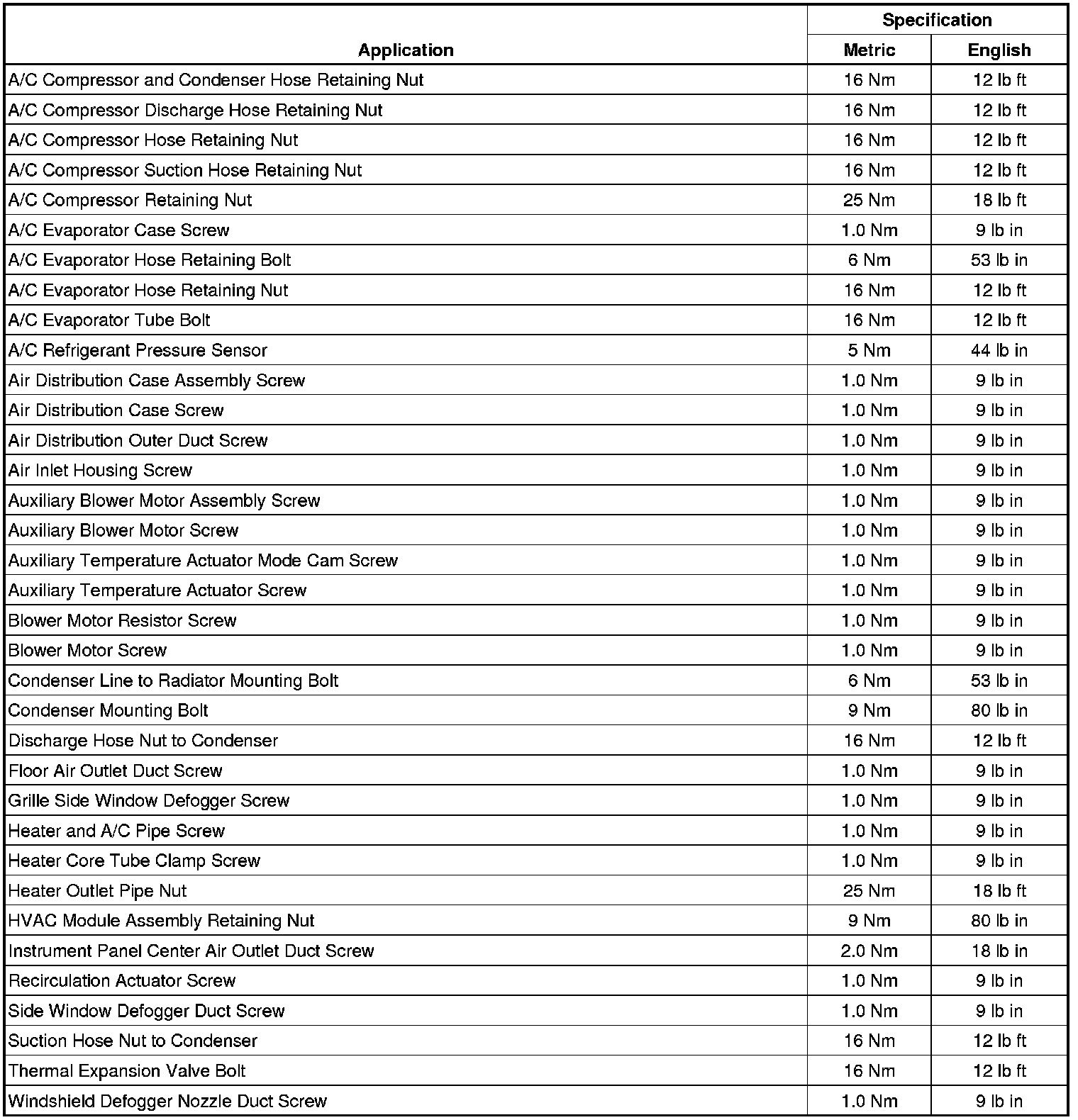 Fastener Tightening Specifications