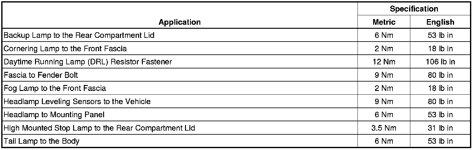 Fastener Tightening Specifications