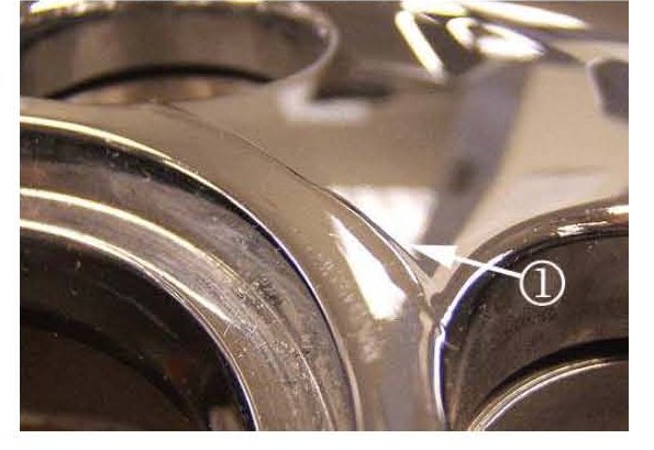 The photo above is an example of this concern. The arrow (1) indicates the approximate location of the chrome wrinkle. It takes the shape of a circular pattern.