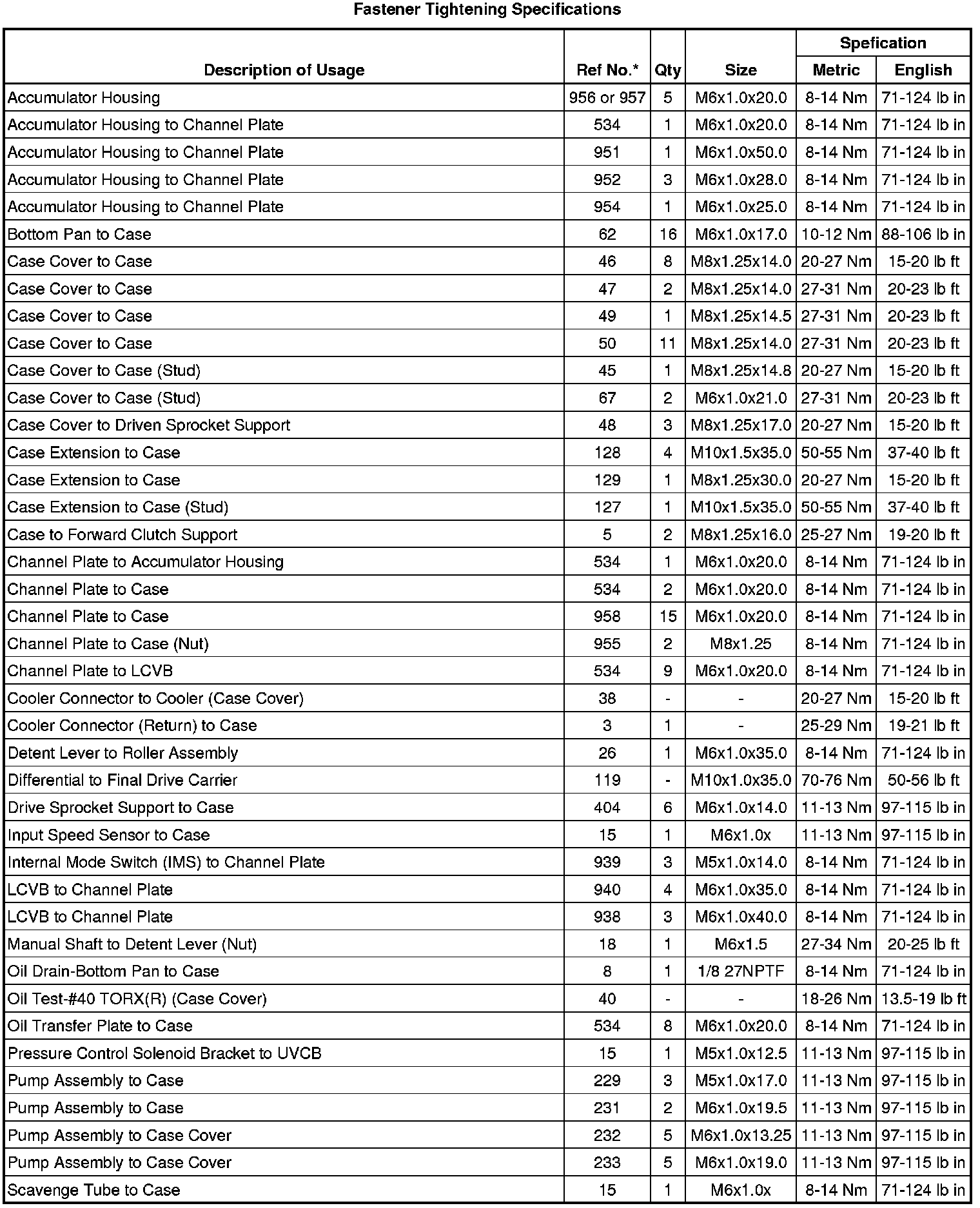 Fastener Tightening Specifications