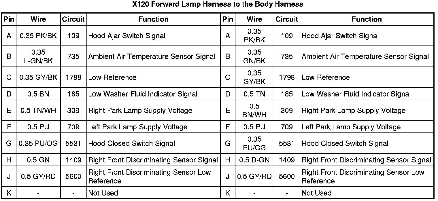 X120 Forward Lamp Harness to the Body Harness
