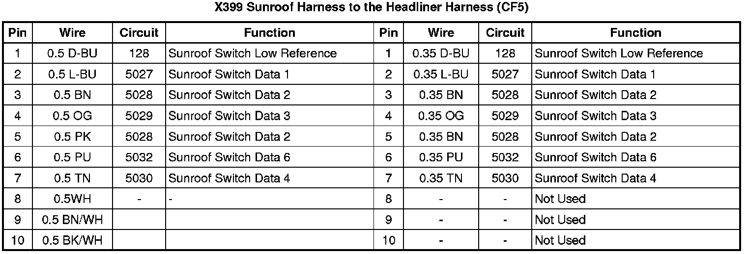 X399 Sunroof Harness to the Headliner Harness (CF5)