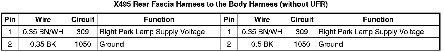 X495 Rear Fascia Harness to the Body Harness (without UFR)