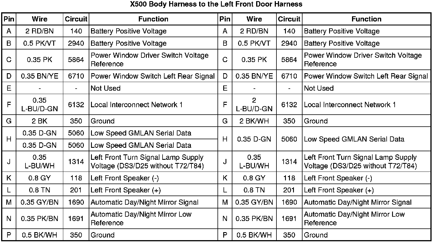 X500 Body Harness to the Left Front Door Harness