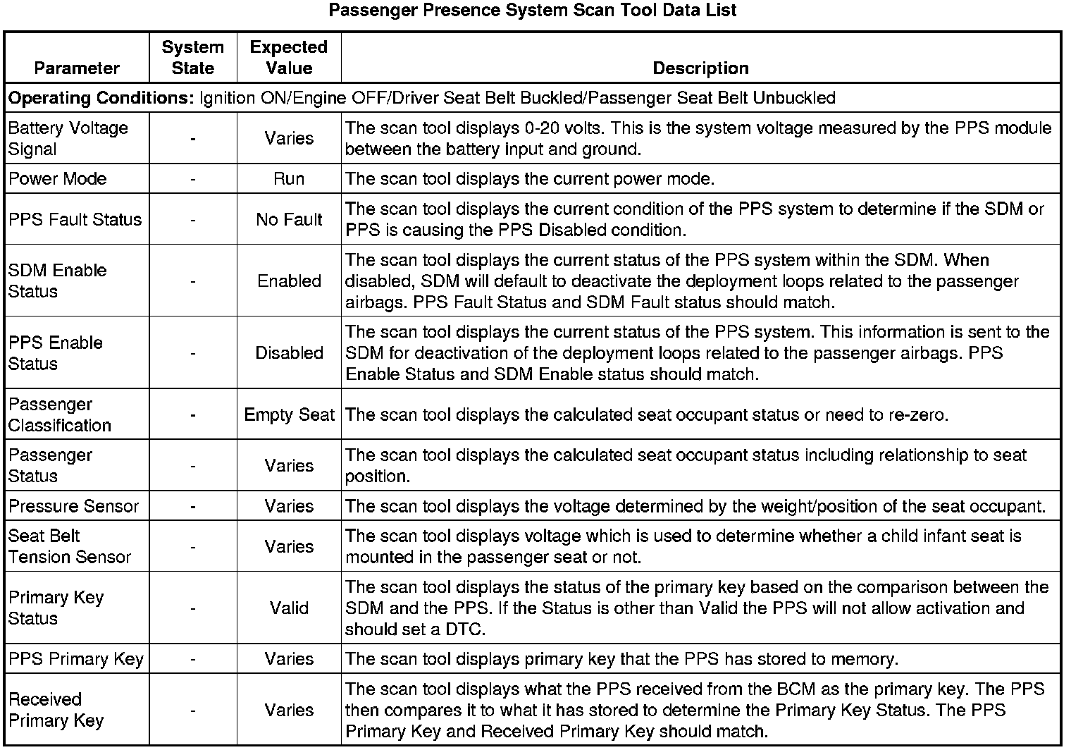 Inflatable Restraint Passenger Presence System Scan Tool Information