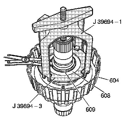 7. Install the J 39694 - clutch compressor clutch spring compressor and compress the spring.