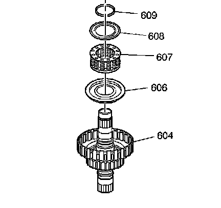 5. Remove the snap ring (515) from the third clutch housing (604).