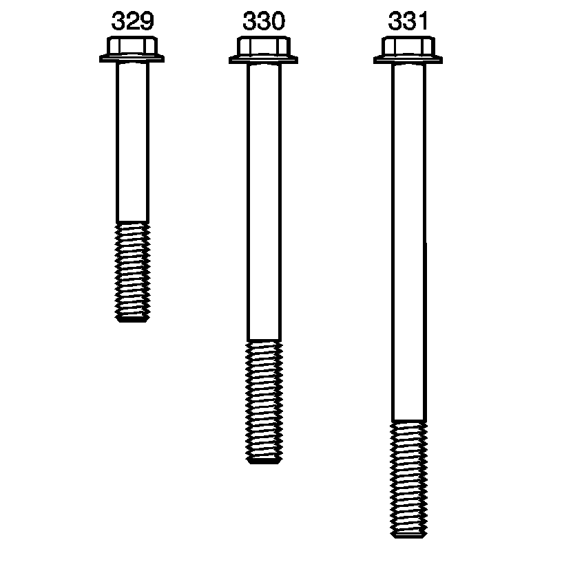 3. Install the upper control valve body bolts (229, 329, 330, 331) and hand tighten.
