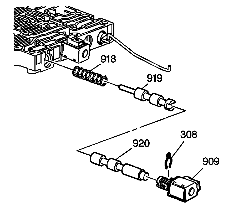 12. Inspect the 1-2 shift solenoid valve (909) for damage.