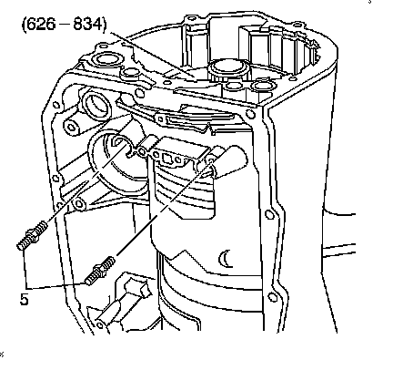 2. Remove the two 13-mm forward clutch support bolts (5) from the case.