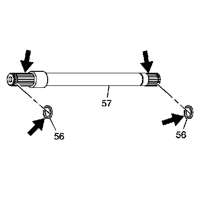 1. Inspect the output shaft (57) splines for burrs or damage. Inspect the snap rings (56) for overexpansion.