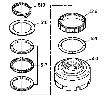 1. Remove the spiral snap ring (519). Discard the snap ring, which is not reusable.