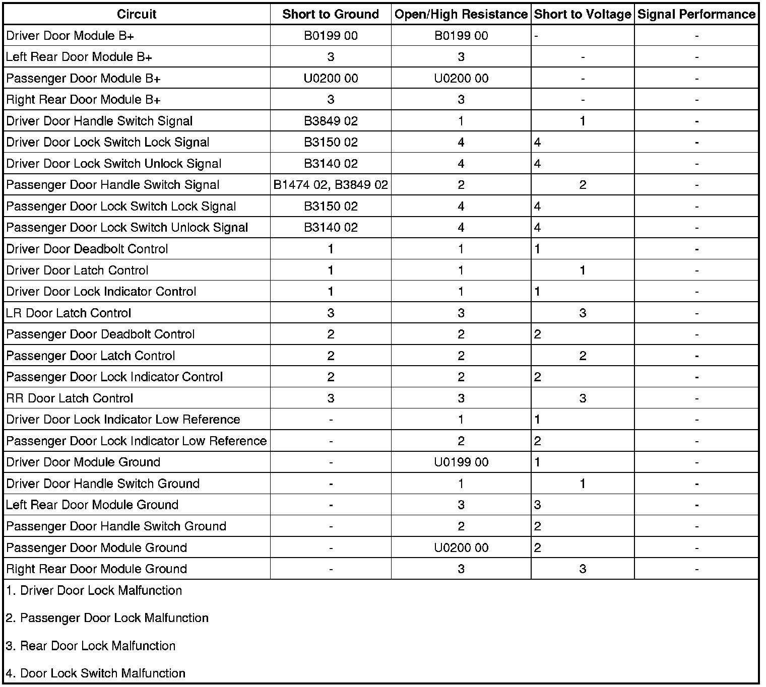 - Exterior Passenger Door Handle Switch Circuit Short to Ground