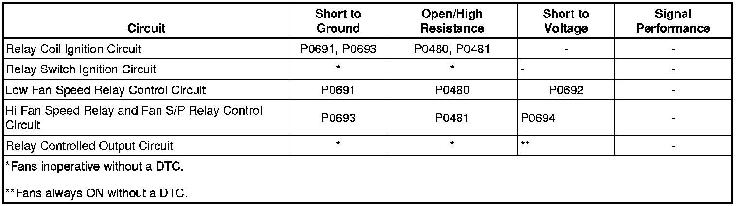 - Cooling Fan Relay 1 Control Circuit High Voltage