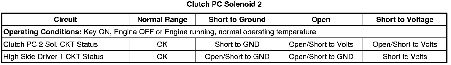 - Clutch Pressure Control (PC) Solenoid 2 Control Circuit Low Voltage