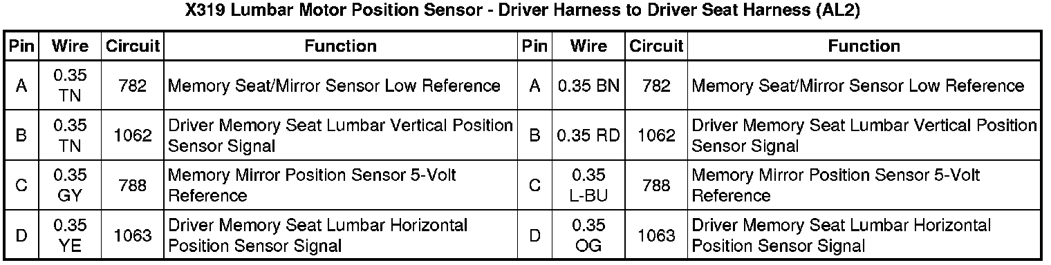 X319 Lumbar Motor Position Sensor - Driver Harness to Driver Seat Harness (AL2)