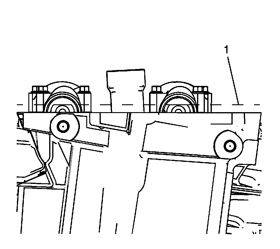4. Position the camshaft lobes in a neutral position with the flats on the back of the camshafts up and parallel (1) with the right cylinder head camshaft cover rail.