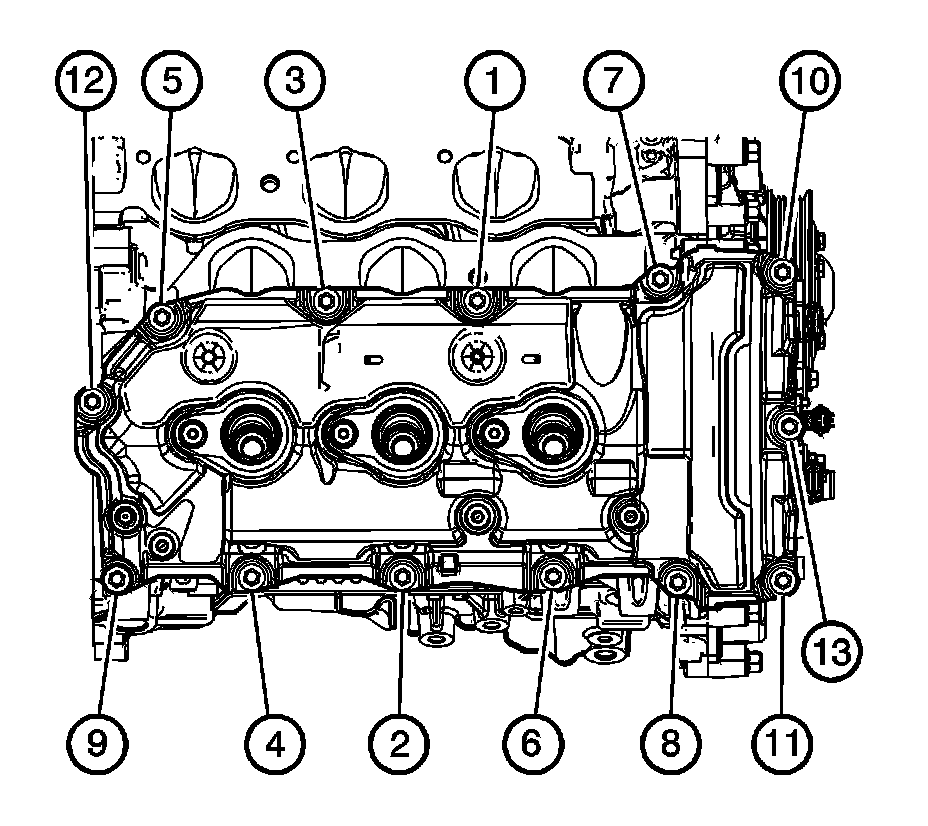 7. Tighten the right camshaft cover bolts in the sequence shown.