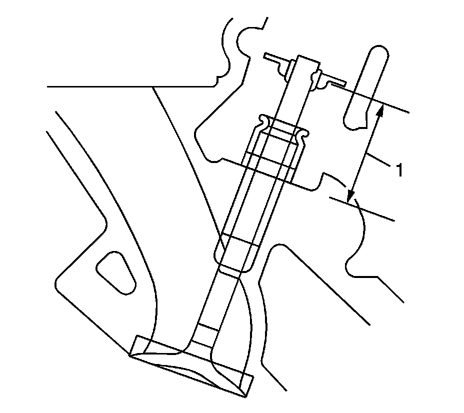 5. Measure the distance (1) between the cylinder head to the bottom of the valve spring retainer. Refer to Engine Mechanical Specifications (LLT) (Specifications).