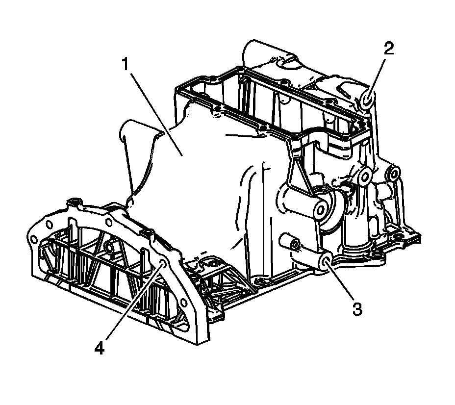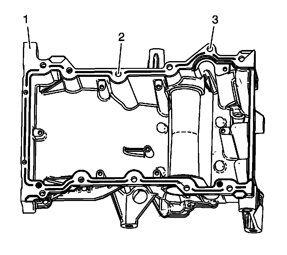 * Gouges or damage to the oil pan sealing surfaces (1)