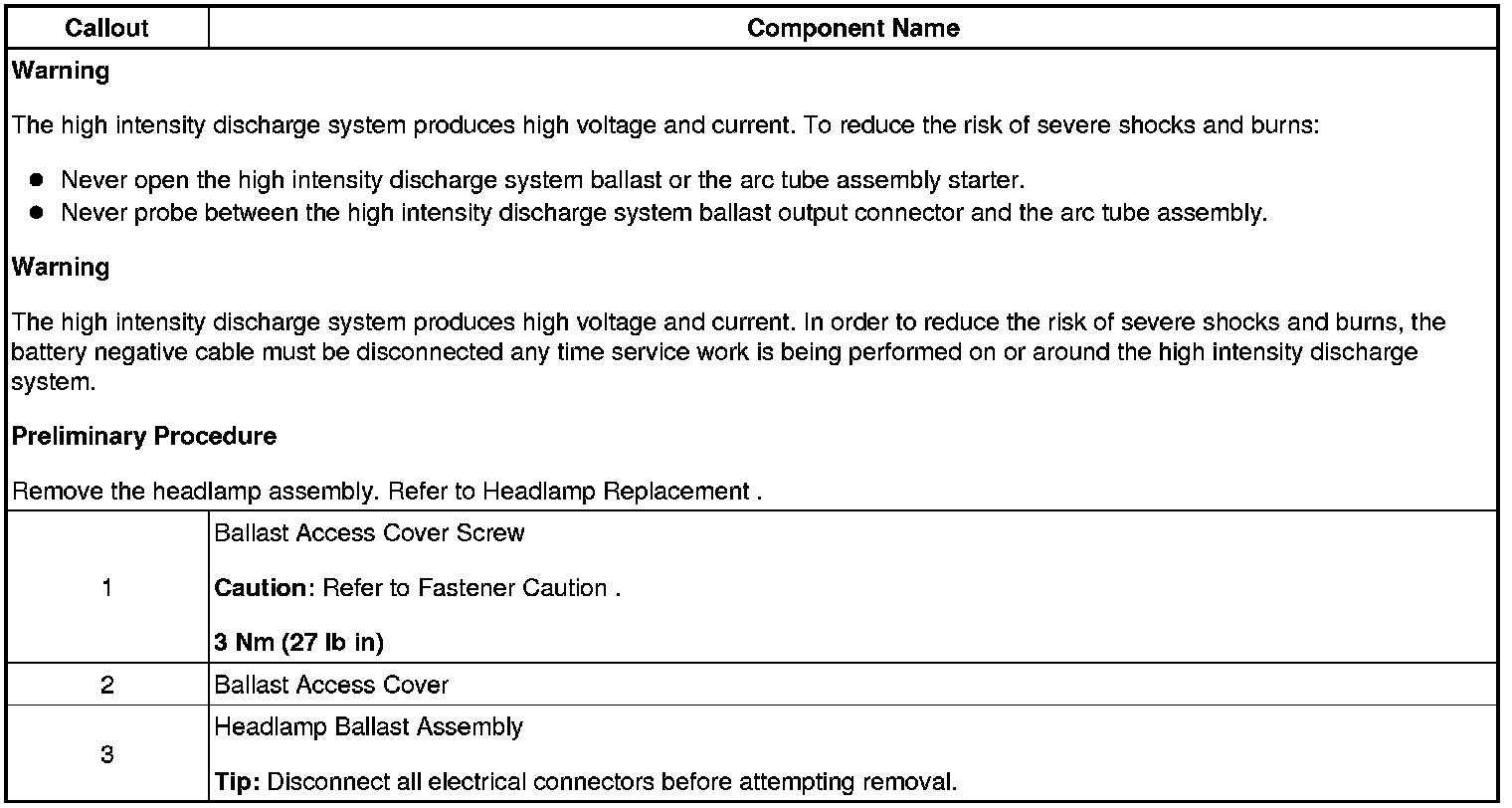 Headlamp Ballast Replacement