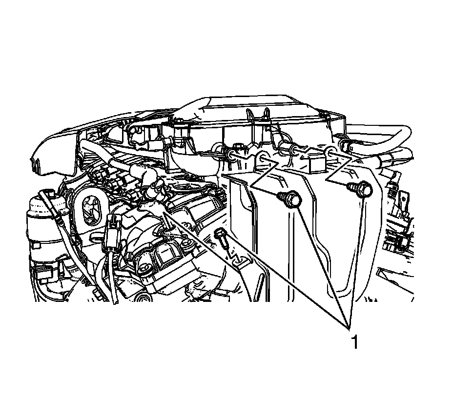 5. Remove the fuel pipe shield to intake manifold bolts (1).