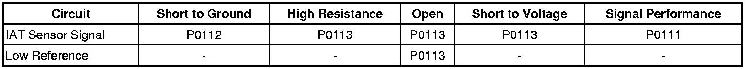 * Depending on the ambient temperature, an IAT sensor signal circuit or low reference circuit that is shorted to the MAF sensor signal circuit can cause DTC P0113 to set. This condition causes a rapid fluctuation in the IAT Sensor parameter.