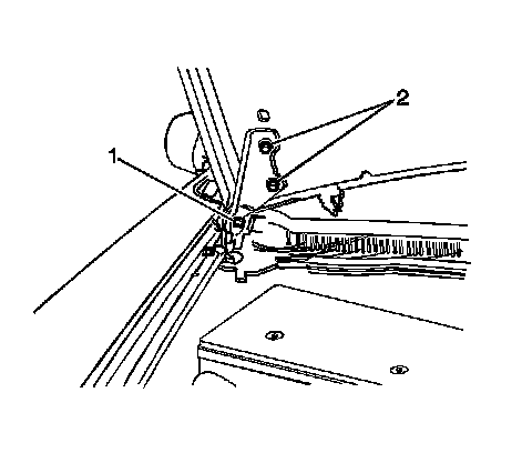 1. Loosen the fasteners (2) that secure the hood to the hood hinges (1).