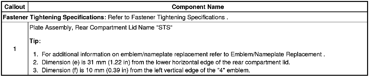 Rear Compartment Lid Nameplate Replacement (STS Nameplate)
