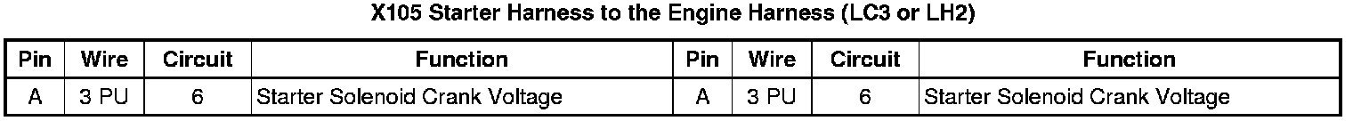 X105 Starter Harness to the Engine Harness (LC3 or LH2)