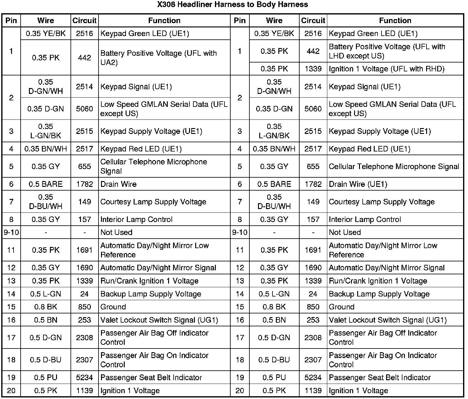 X308 Headliner Harness to Body Harness