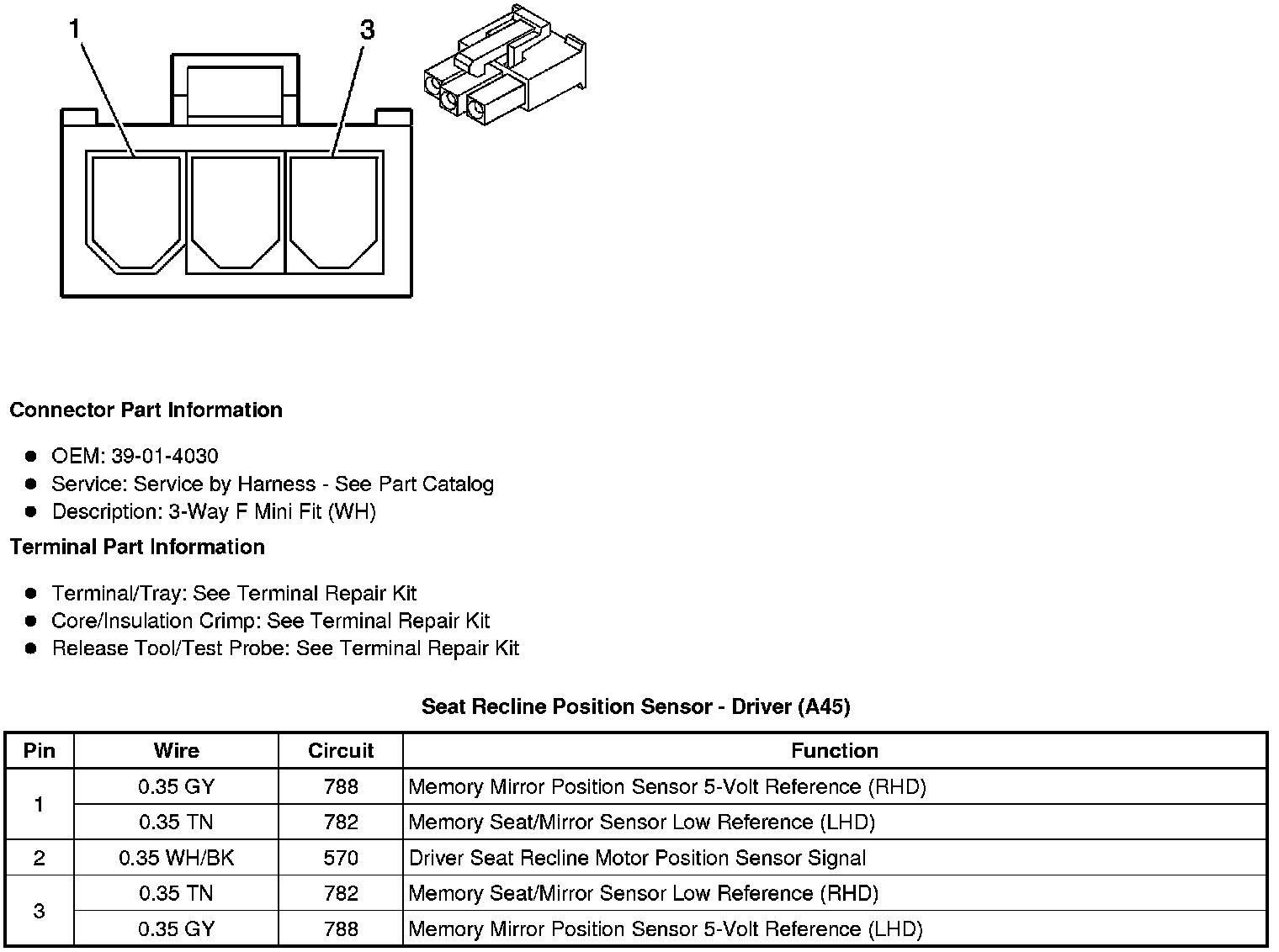 Seat Recline Position Sensor - Driver (A45)