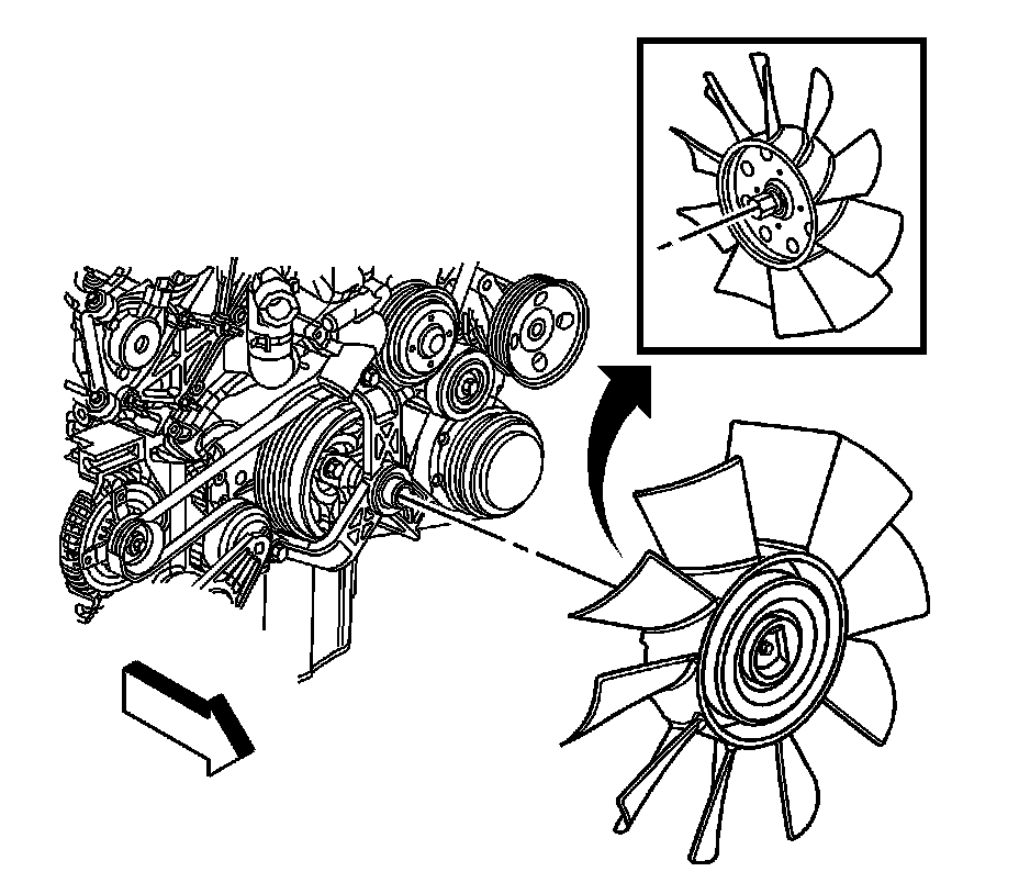 3. Remove the fan shroud. Refer to Engine Coolant Fan Shroud Replacement (LH2 With V92) (Service and Repair)Engine Coolant Fan Shroud Replacement (LH2 Without V92, LLT) (Service and Repair)Engine Coolant Fan Shroud Replacement (LC3, LY7) (Service and Repair).