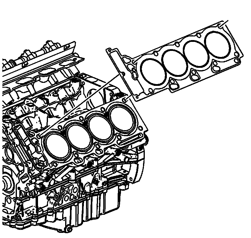 3. Install a new left cylinder head gasket using the deck face locating pins for retention.