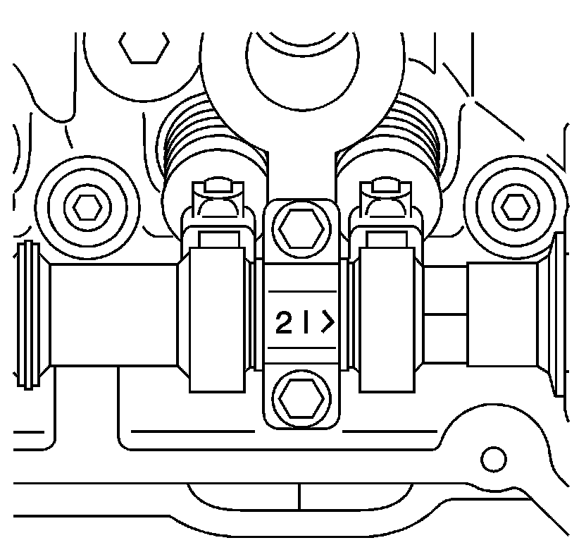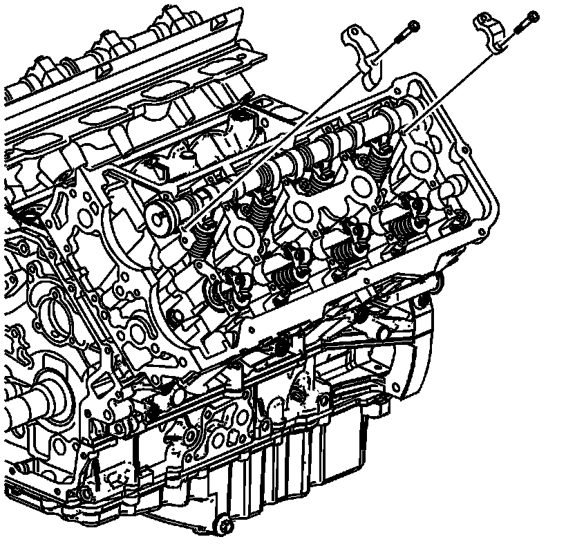 Note: Ensure each valve rocker arm is properly aligned to the valve tip, the valve lifter and the camshaft lobe. Inspect the alignment prior to and after the camshaft caps are tightened to specifications.