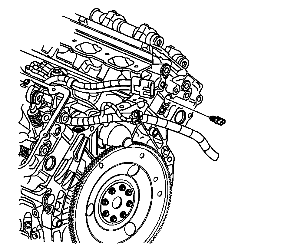 16. Connect the knock and crankshaft position sensor wiring harness to the knock sensors and crankshaft position sensor.