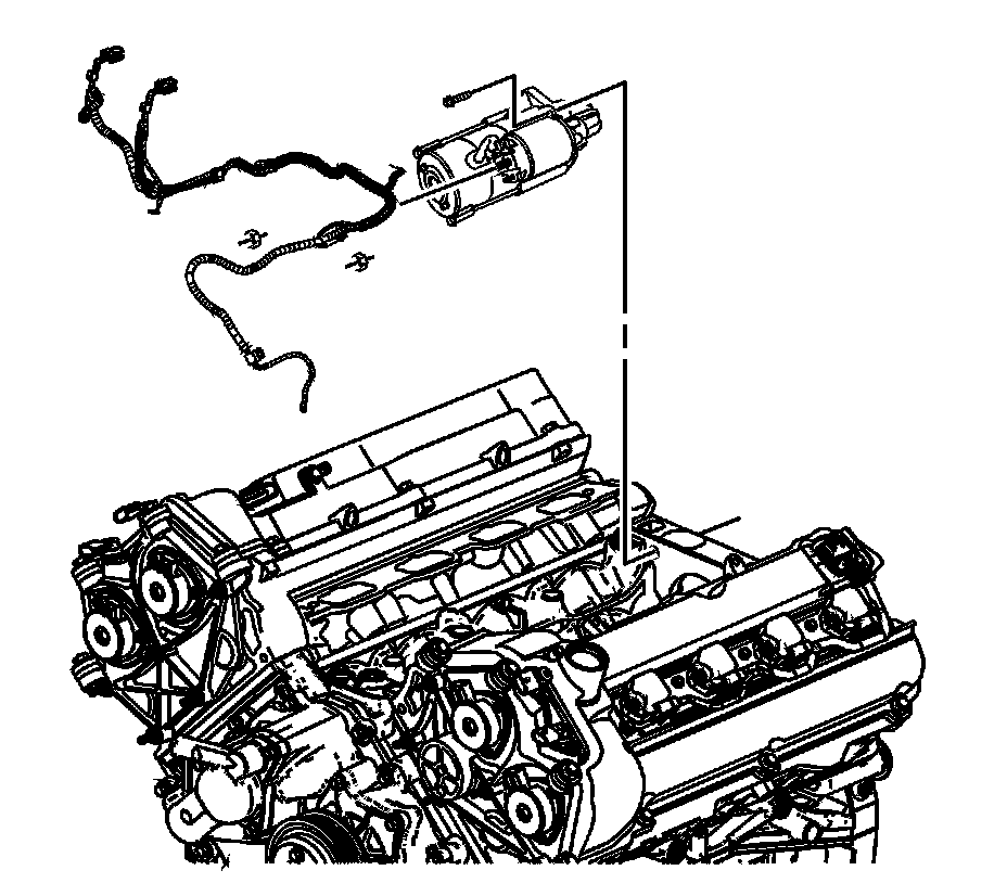 7. Install the starter motor bolts and tighten to 30 Nm (22 lb ft).