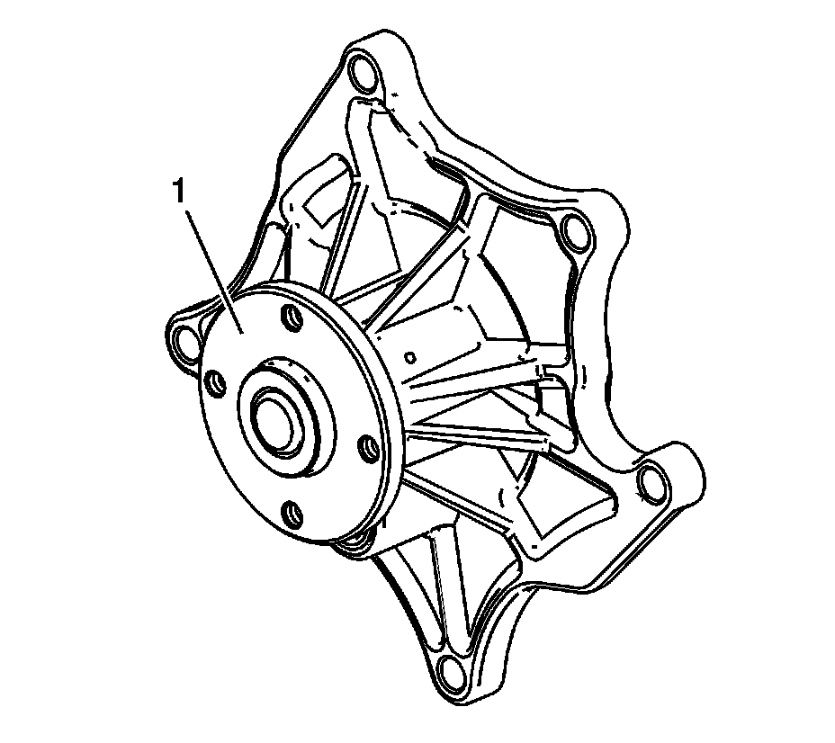 1. Rotate the water pump hub (1). The water pump hub and impeller should turn straight and smoothly. If the hub wobbles, is noisy or feels "lumpy" when turned, replace the water pump.
