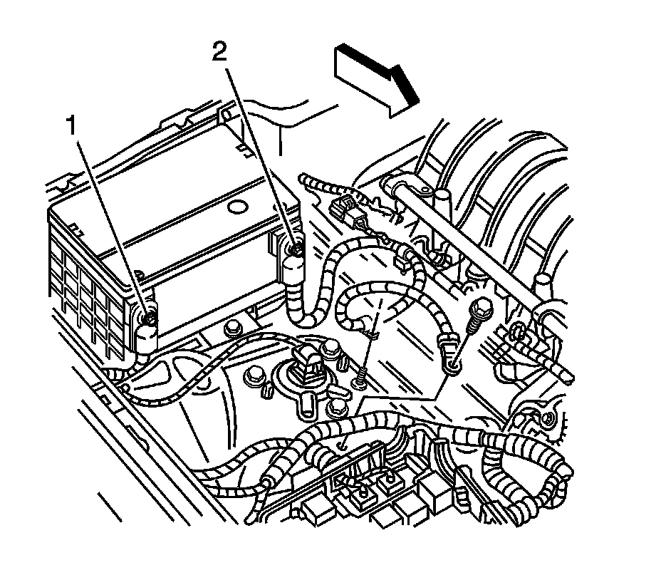 2. Disconnect the positive and negative battery cables from the battery. Refer to Battery Negative Cable Disconnection and Connection (Side Post) (Service and Repair)Battery Negative Cable Disconnection and Connection (LHD With Top Post) (Service and Repair) and Battery Positive Cable Replacement (LH2 With Top Post) (Service and Repair)Battery Positive Cable Replacement (LH2 With Side Post) (Service and Repair)Battery Positive Cable Replacement (LLT With Top Post) (Service and Repair)Battery Positive Cable Replacement (LLT With Side Post) (Service and Repair)Battery Positive Cable Replacement (LC3) (Service and Repair).