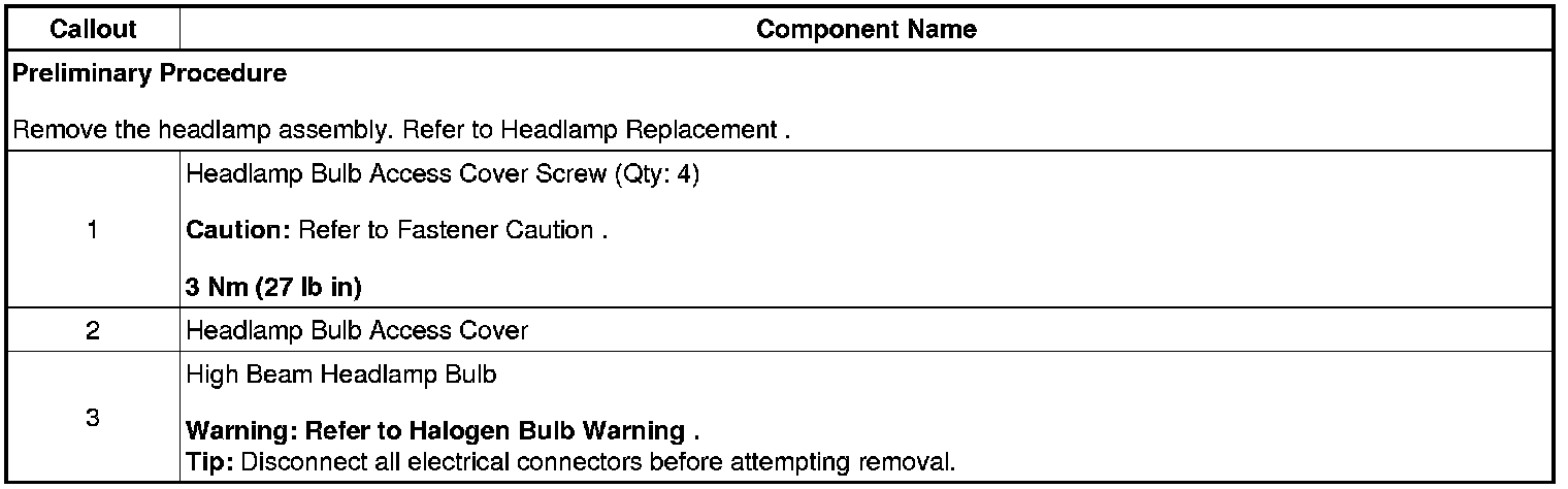 Headlamp Bulb Replacement (High Beam)