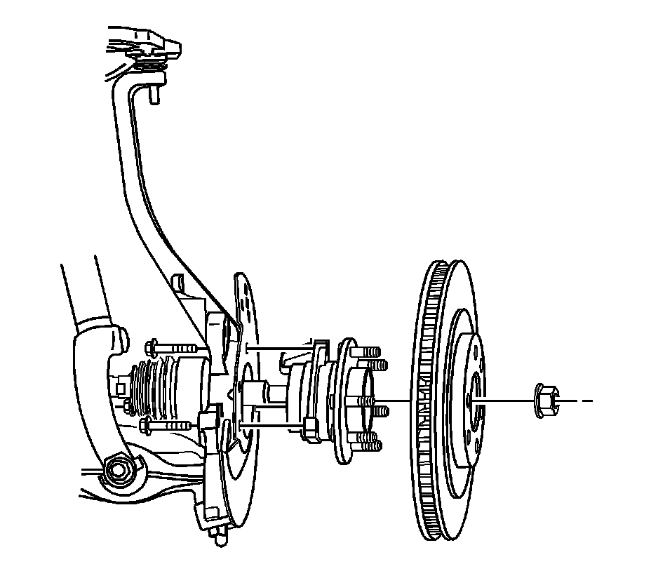 4. Remove the brake rotor. Refer to Front Brake Rotor Replacement (JE5, JL9) (Service and Repair)Front Brake Rotor Replacement (J56) (Service and Repair).