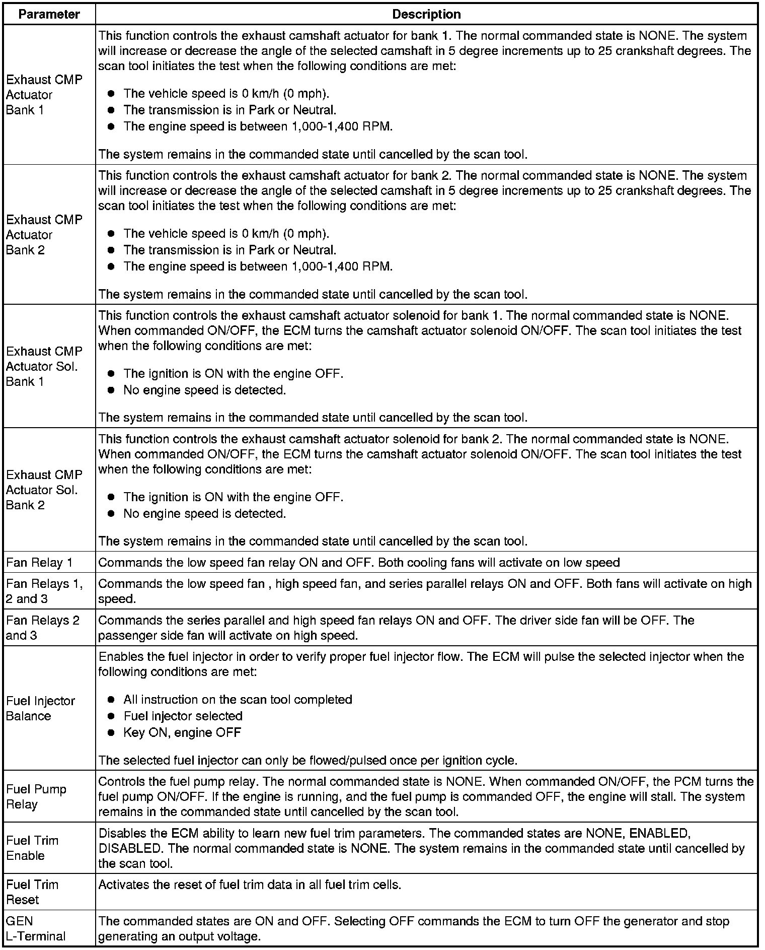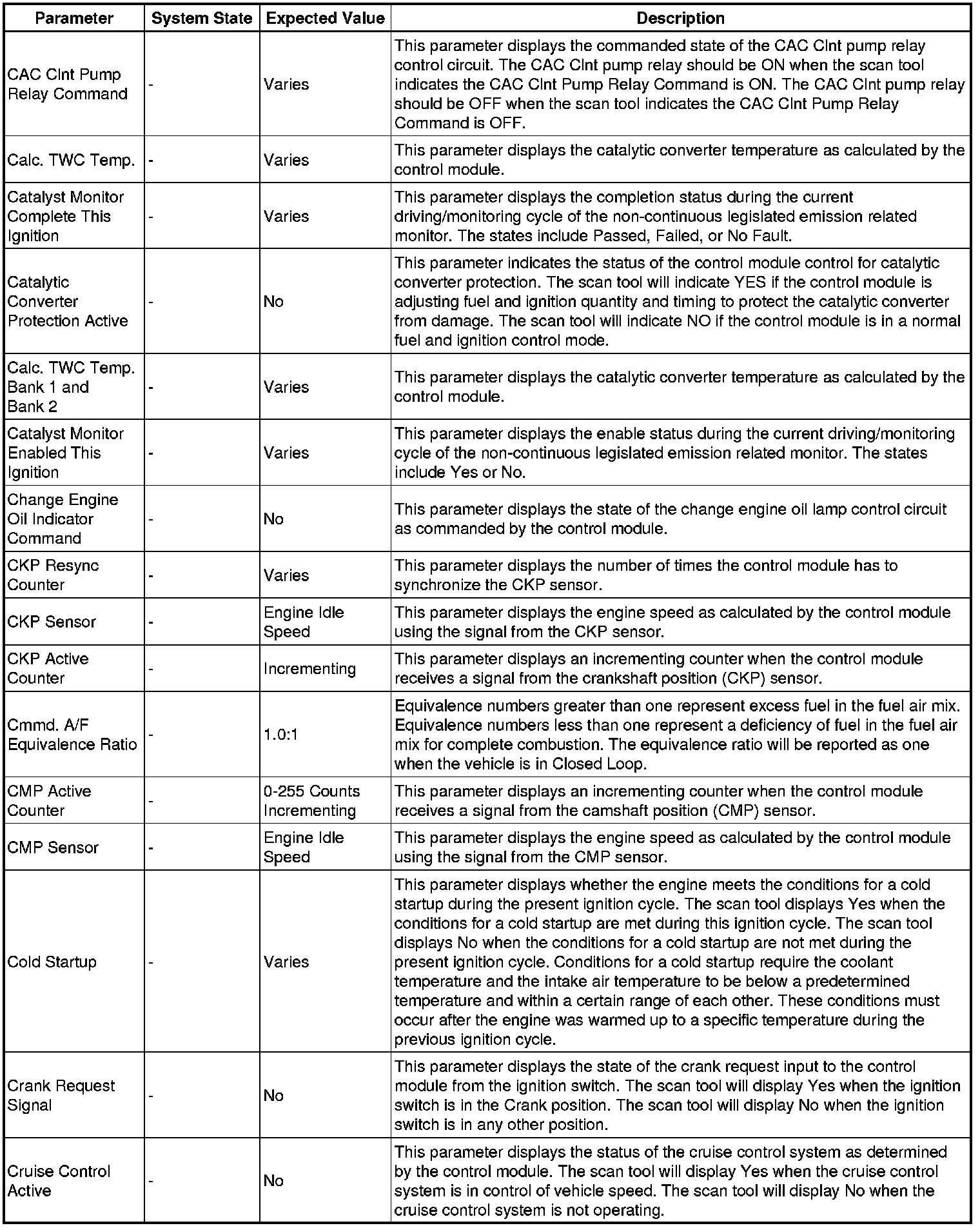 The Engine Control Module Scan Tool Data List contains all engine-related parameters that are available on the scan tool. The list is arranged in alphabetical order. A given parameter may appear in any one of the data lists, and in some cases may appear more than once, or in more than one data list in order to group certain related parameters together.