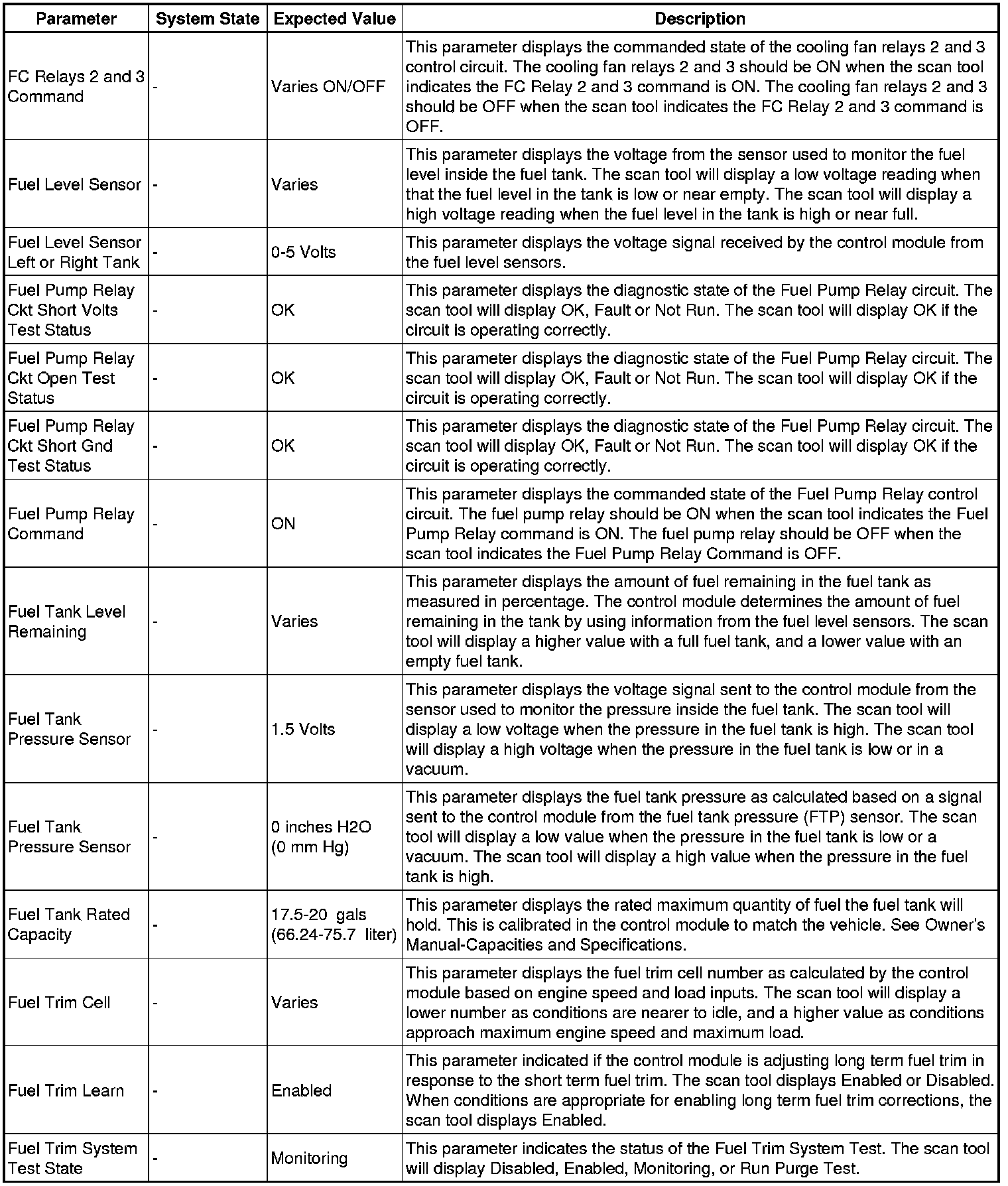 The scan tool values from a properly running engine may be used for comparison with the engine you are diagnosing. The engine scan tool data list represents values that would be seen on a normally running engine.