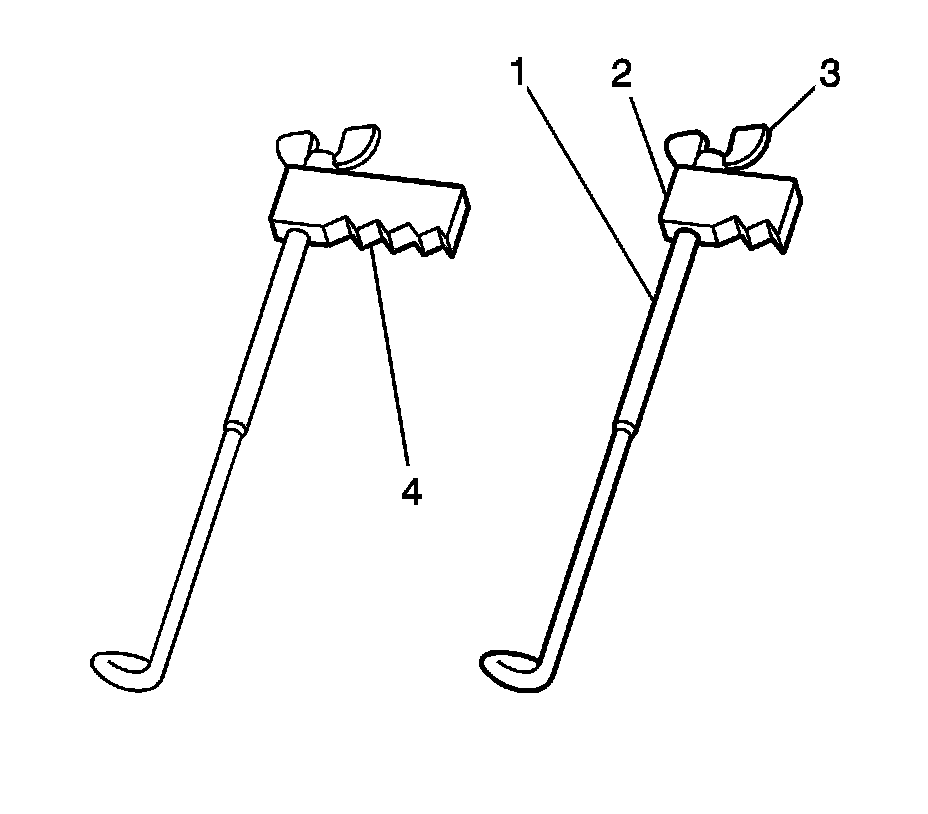 3. Insert the hook end (2) into a secondary timing chain link as shown.