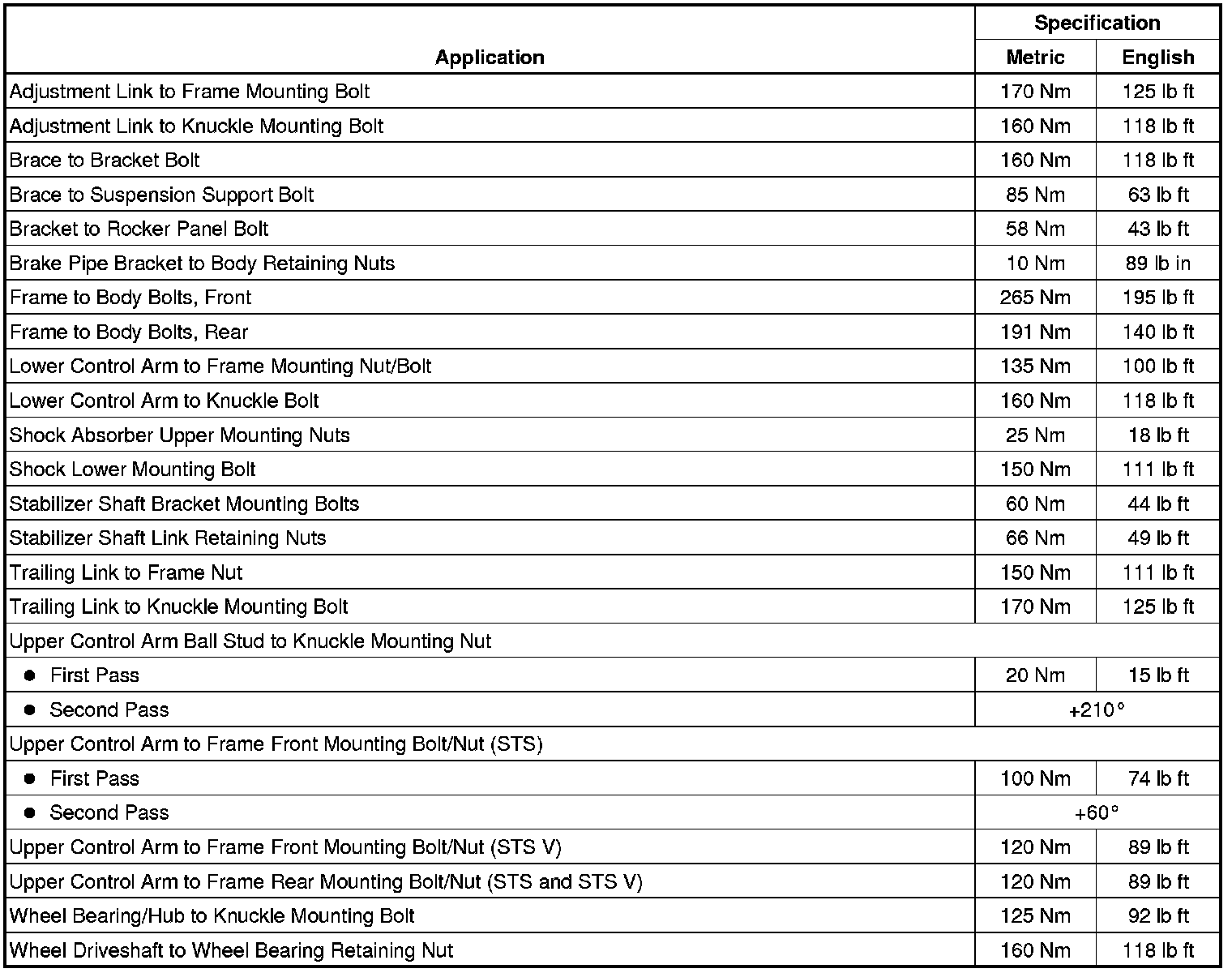 Fastener Tightening Specifications