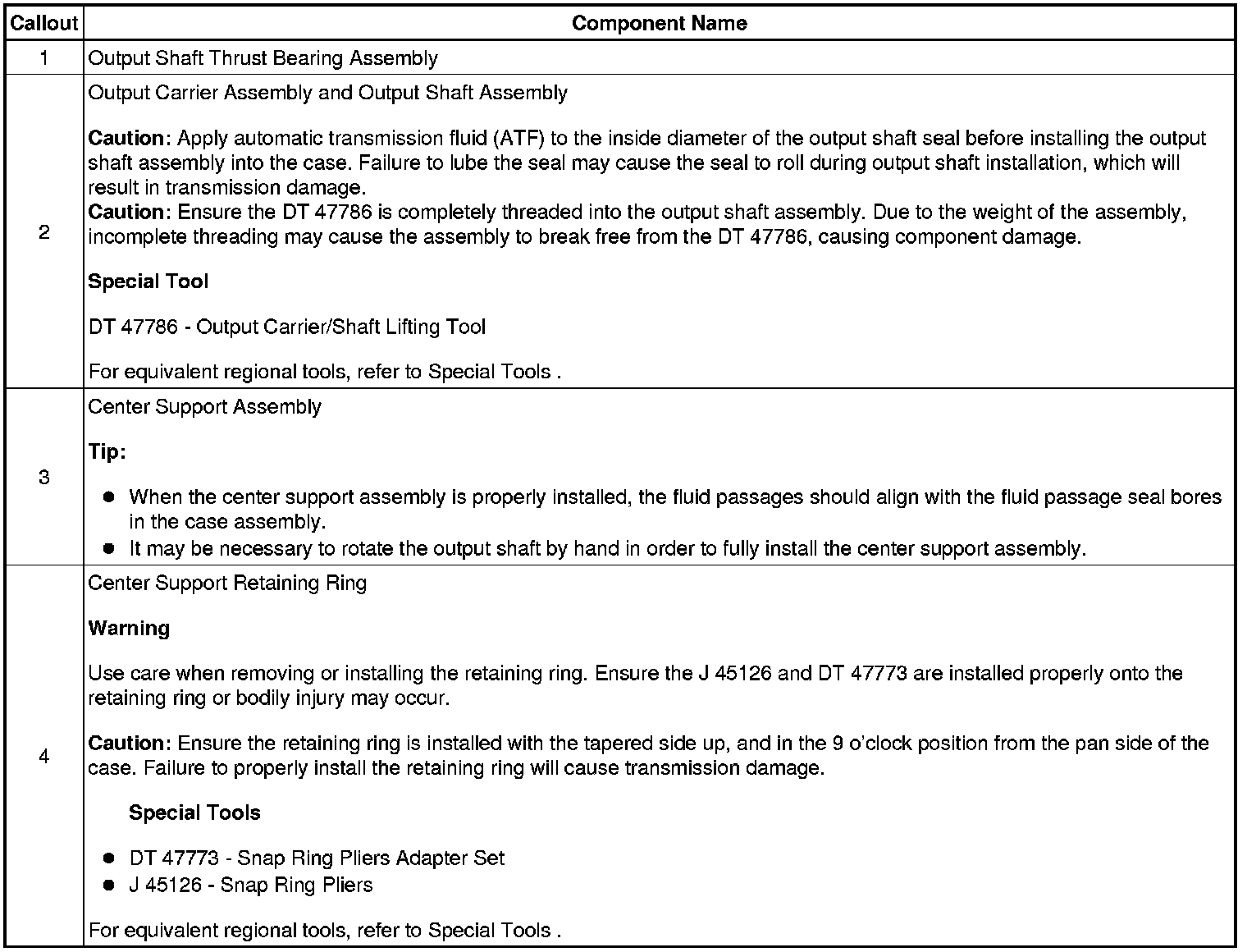 Center Support, Output Carrier and Output Shaft Installation (6L80)