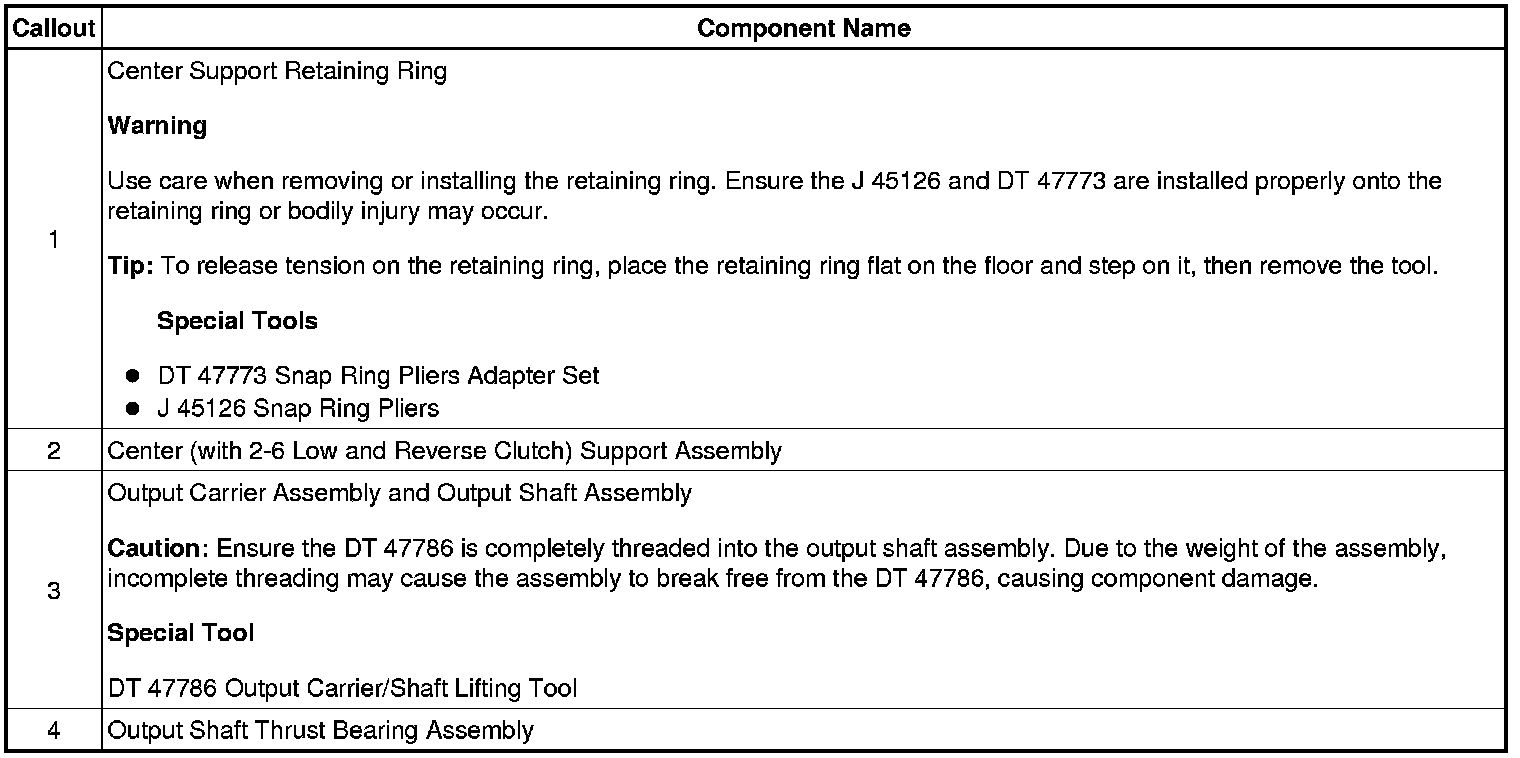 Center Support, Output Carrier and Output Shaft Removal (6L80)