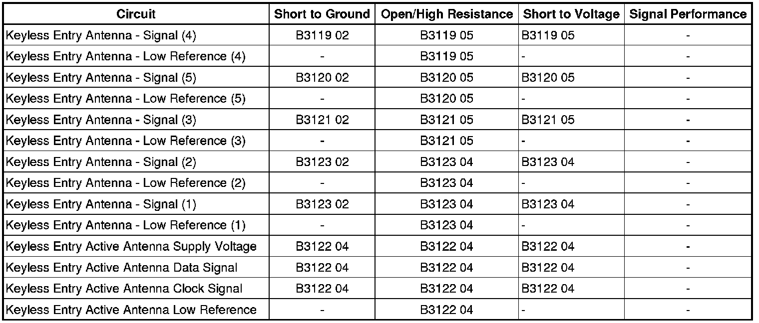 - Keyless Entry Antenna 2 Performance Short to Battery or Open