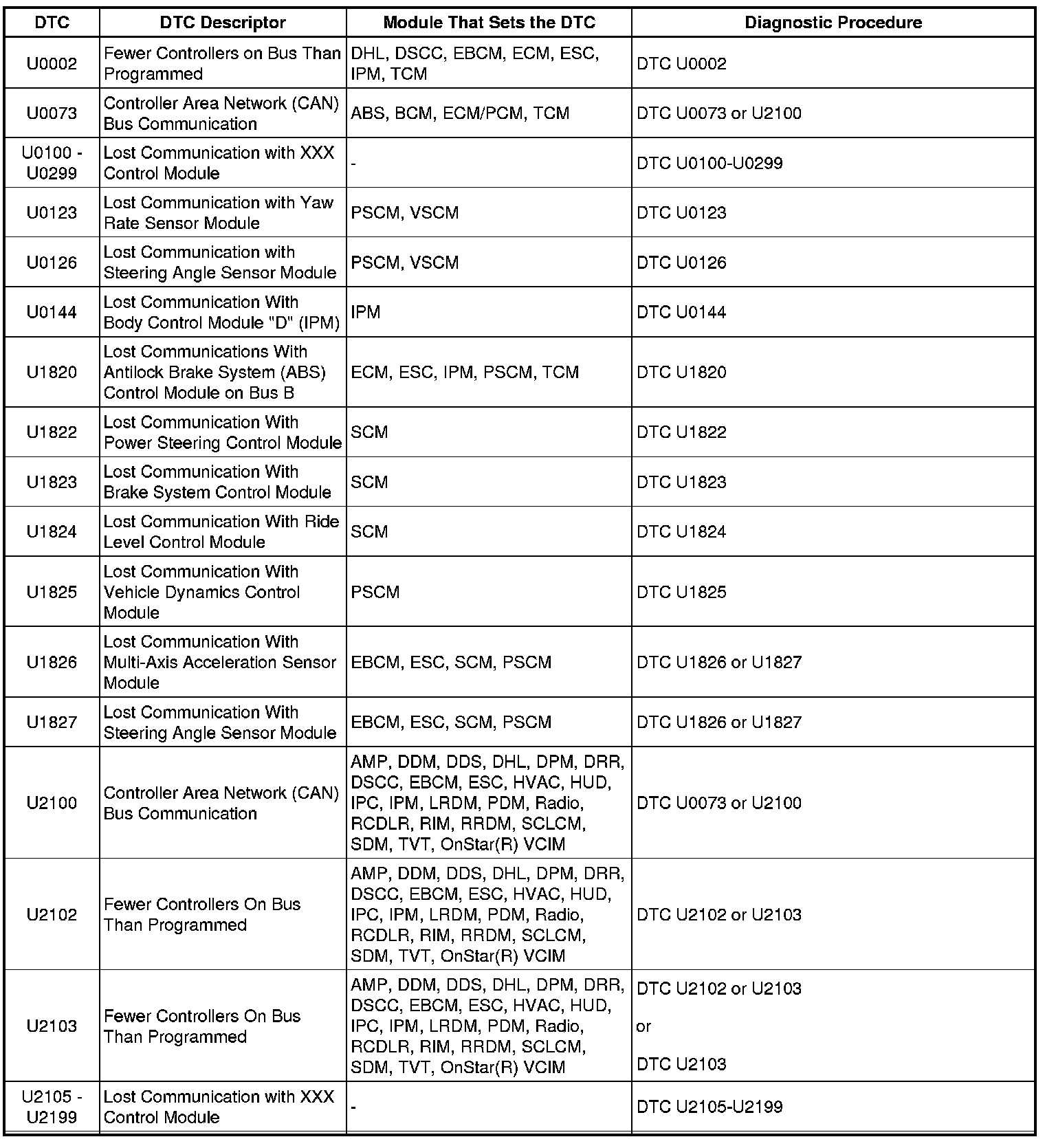 This master DTC list includes all applicable DTCs in alphanumeric order with descriptors.